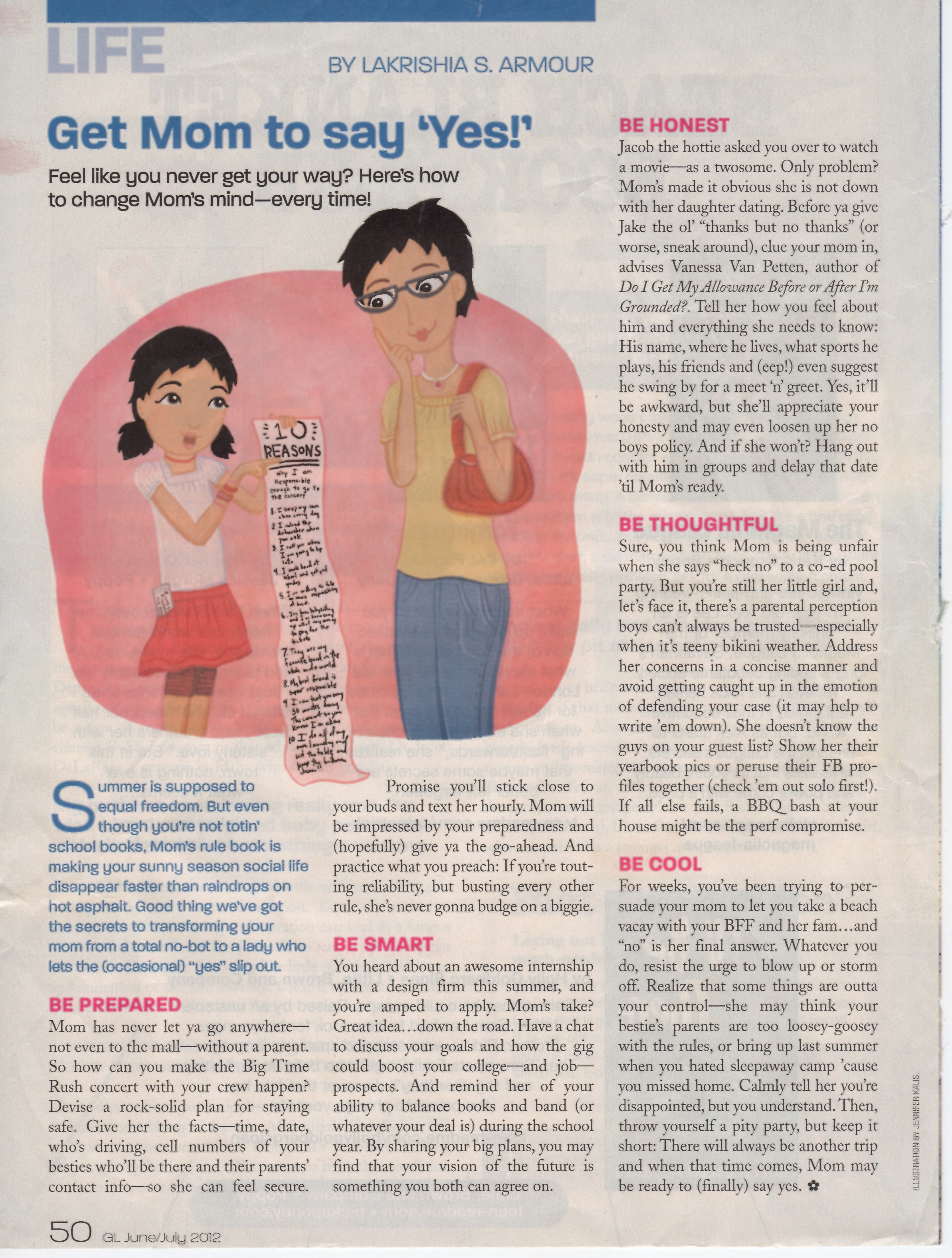 Advice feature for Girls’ Life Magazine June/July 2012 print issue.